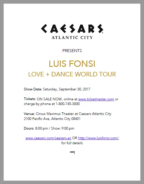 LUIS FONSI LOVE + DANCE WORLD TOUR