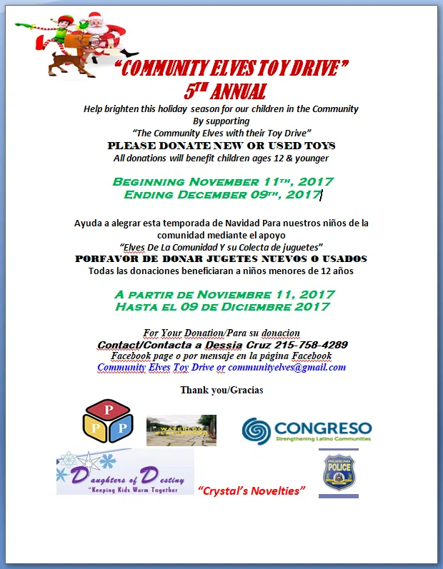 “The Community Elves with their Toy Drive” PLEASE DONATE NEW OR USED TOYS