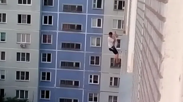 Un joven ruso de la ciudad de Ozersk intent sorprender a su amiga de una forma peculiar: Baj con una cuerda desde el techo de un edificio hasta el octavo piso, segn muestra un video de YouTube. El inm...