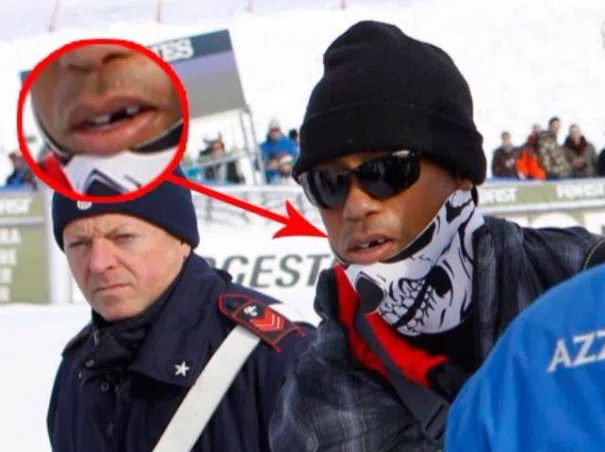 Que le paso a Tiger Woods en la boca! (foto)