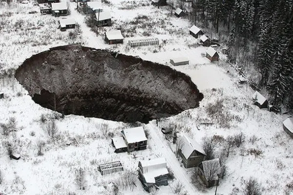 Un extraño cráter se traga una mina en Rusia y sigue creciendo